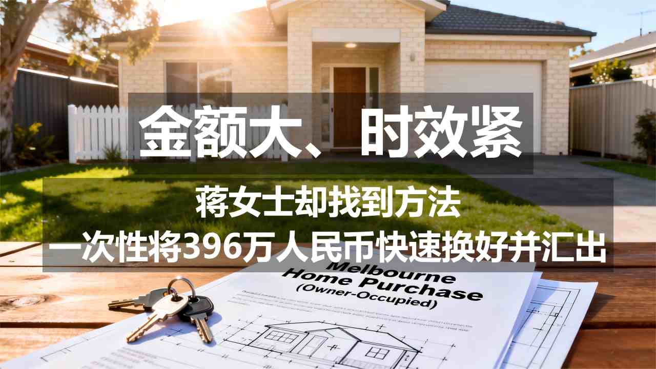 蒋女士一家准备移居澳大利亚,需要一次性兑换 396万人民币作为购房、购车与生活预算。然而传统机构要求分批处理、流程繁琐,让她担心赶不上付款时间。经专业团队协助,她无需拆分资料,也不用盯着汇率,由我们统