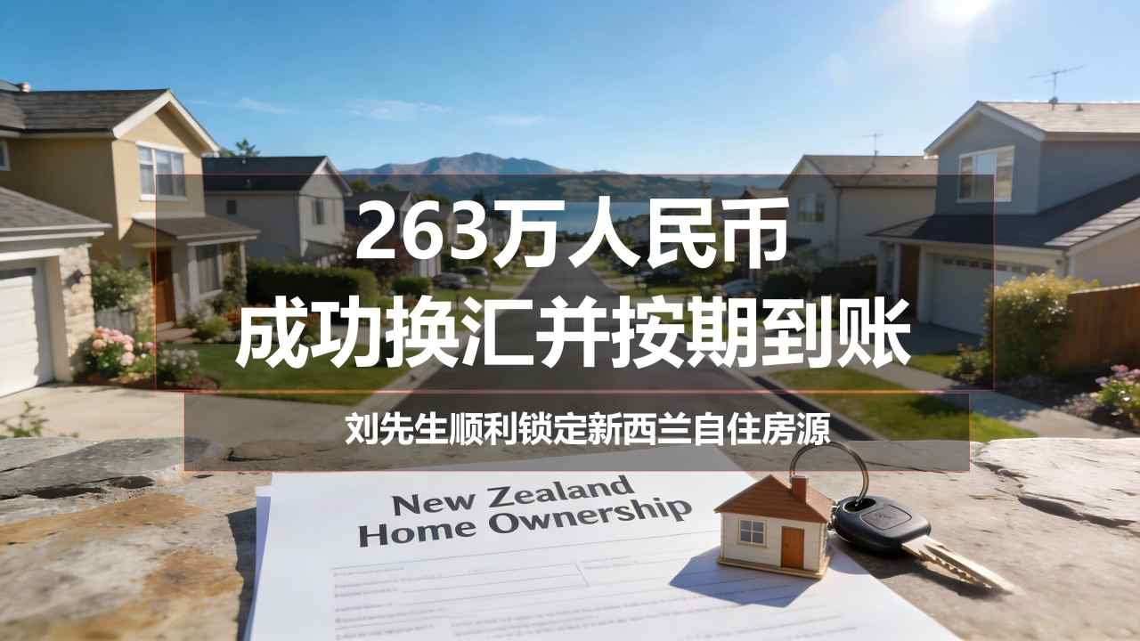 263万人民币成功换汇并按期到账,刘先生顺利锁定新西兰自住房源
